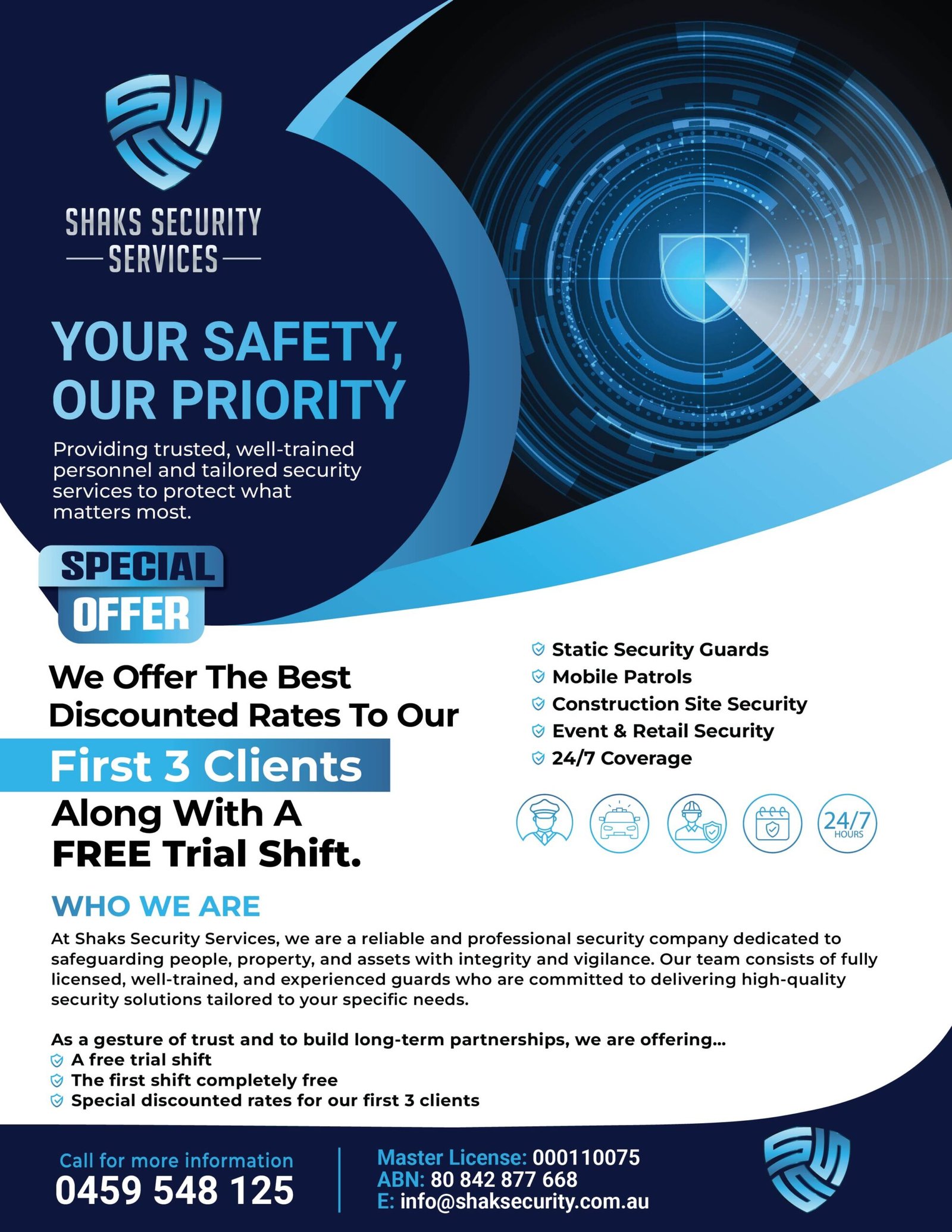 With over 12 years of experience in the security industry, we provide licensed and professional security services for hotels, pubs, clubs, retail, and events. Our focus is on safety, reliability, and tailored solutions to meet every client’s needs.